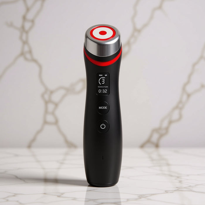 Multifunctional device with LED, microcurrent, and vibration therapy to stimulate collagen, reduce fine lines, refine pores, and calm irritation. Rechargeable with 5 light modes and adjustable intensity for customized at-home treatments.
