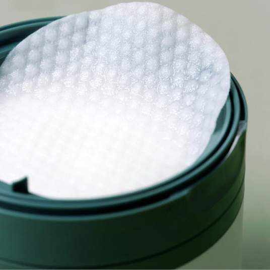 Gently cleanse your skin. Glide the embossed side of the pad across your face to exfoliate. Pat lightly with your fingertips to enhance absorption. Use it in both your morning and evening skincare routine.