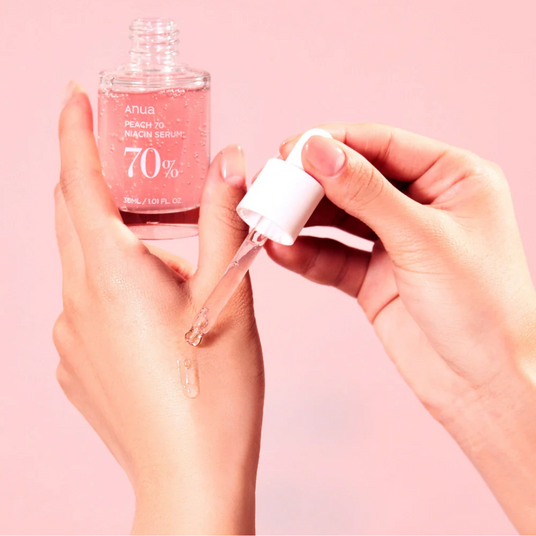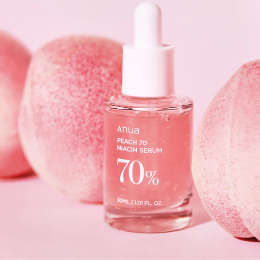 The Niacinamide Serum with 70% Peach Extract is designed to reveal radiant, glass-like skin. Perfect for dry skin, this facial serum provides deep hydration and improves skin texture, leaving the face with a healthy, even glow.