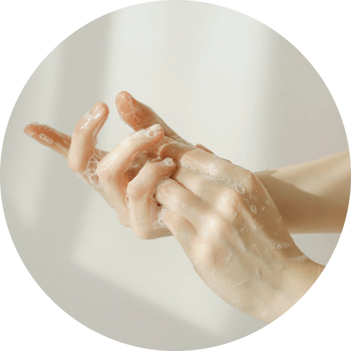 1. Start with dry skin and pump 1–2 times into dry hands.