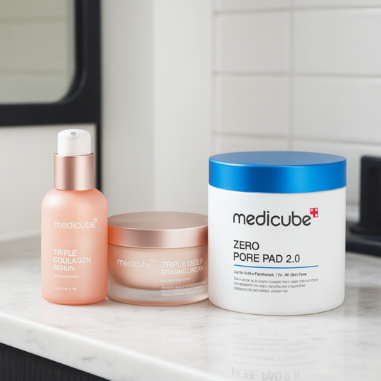 Boost your skin’s firmness, hydration, and radiance with the Collagen Booster Set from Medicube. This set combines toner pads, serum, and cream to target elasticity, hydration, pore care, and a luminous complexion. Ideal for daily use to restore vitality, smoothness, and a youthful glow.